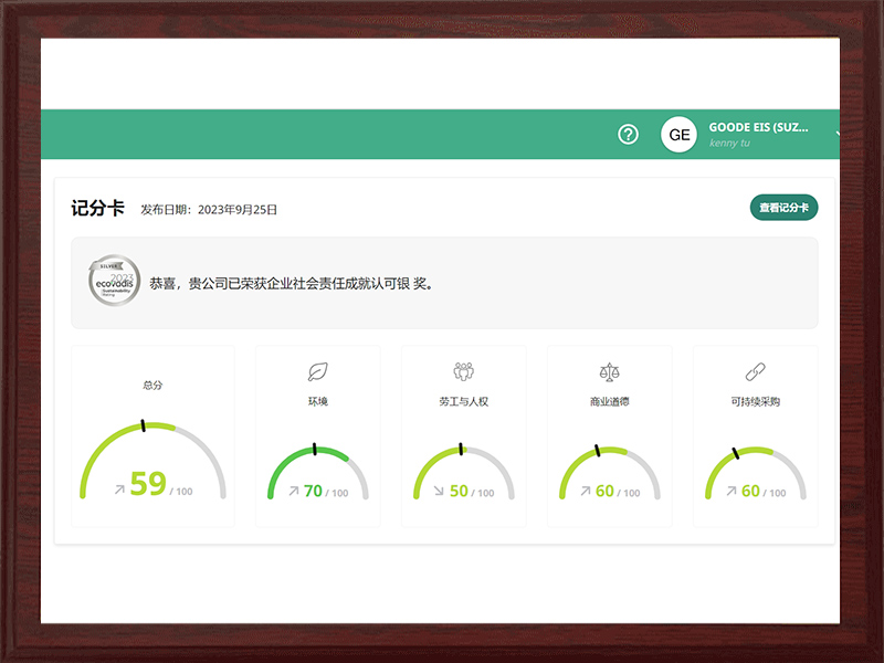 Premio Argento certificato Ecovadis